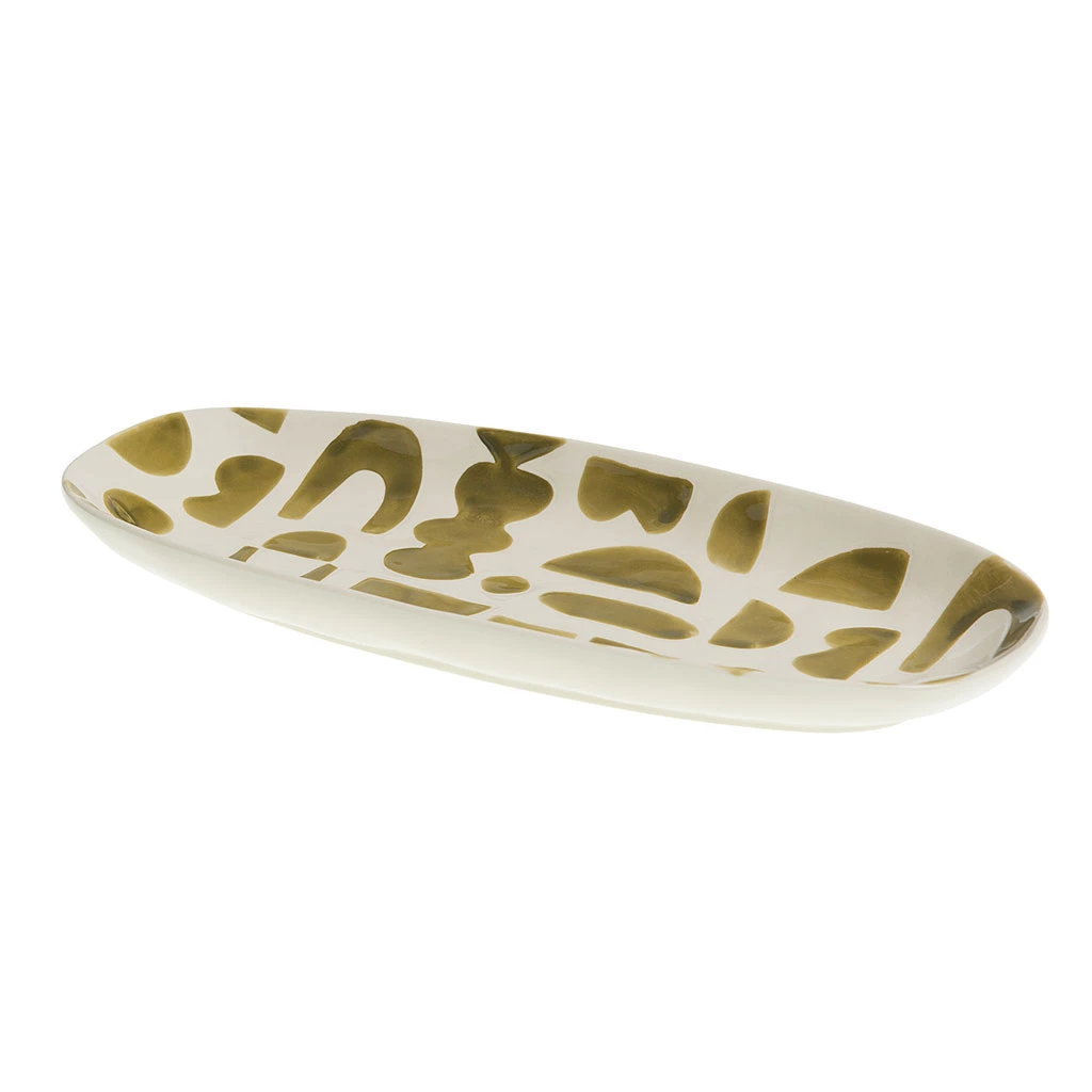 Nettoyez le plat ovale en grès vert et blanc – Ohana à la main avec de l’eau tiède et un détergent doux.