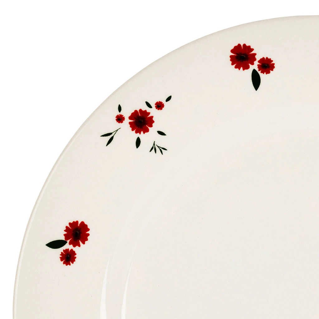 Ornée d’un motif délicat de pâquerettes rouges, elle évoque la fraîcheur des jardins fleuris et s’intègre facilement dans une décoration de table champêtre ou festive.