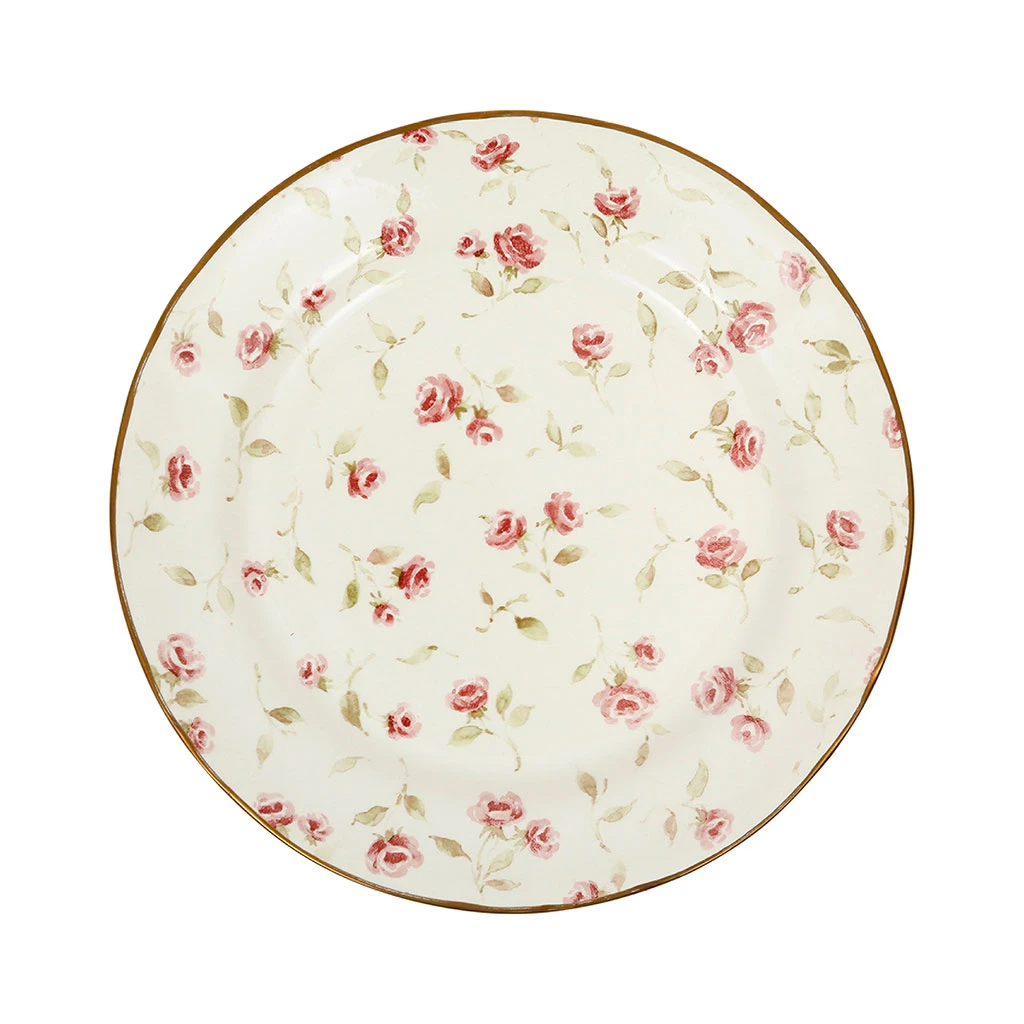 Découvrez notre superbe assiette plate en faïence rose et doré de 26 cm de diamètre, issue de notre collection Arts de la table.