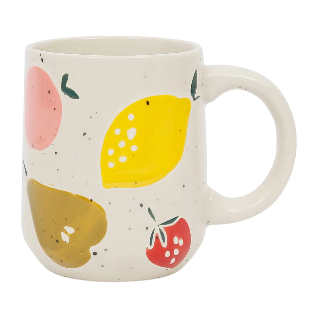 Apportez une touche de gaieté à vos pauses avec ce mug en grès moucheté écru et multicolore de la collection Les Fruits.