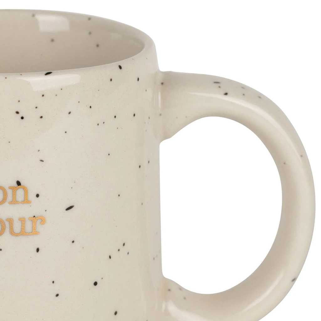Ce mug en grès blanc moucheté, d’une capacité généreuse de 35 cl, est l’accessoire parfait pour savourer une boisson chaude à tout moment de la journée.